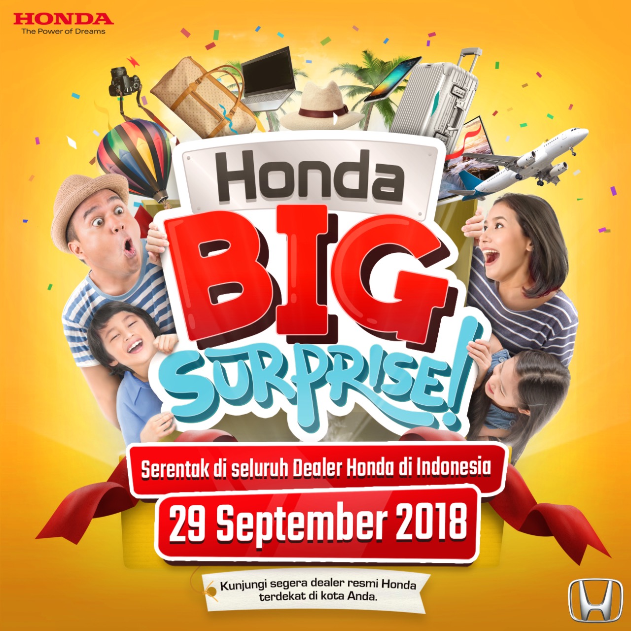 Honda Permata - Honda memberikan kejutan besar bagi konsumennya dengan menggelar program “Big Surprise” yang berlangsung mulai tanggal 29 September hingga 31 Oktober 2018. Selama periode tersebut, setiap konsumen yang melakukan pembelian mobil Honda akan mendapatkan banyak hadiah menarik.